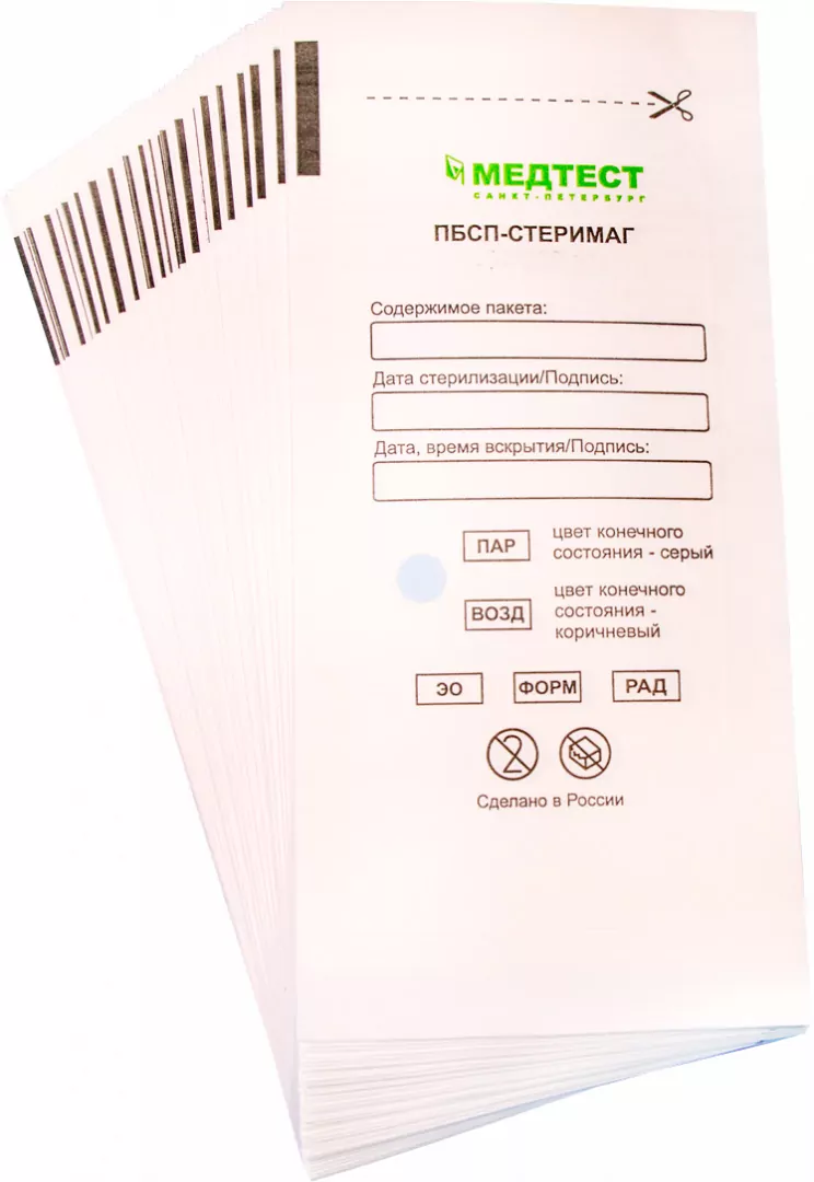 Пакеты для стерилизации инструментов ПБСП-СТЕРИМАГ производятся из белой влагопрочной медицинской бумаги с повышенными барьерными свойствами и подходят для стерилизации всех видов, в особенности воздушной. При запечатывании пакета он становится не проницаем для микроорганизмов и бактерий и одновременно легко проницаем для воздуха, пара и других стерилизующих агентов.