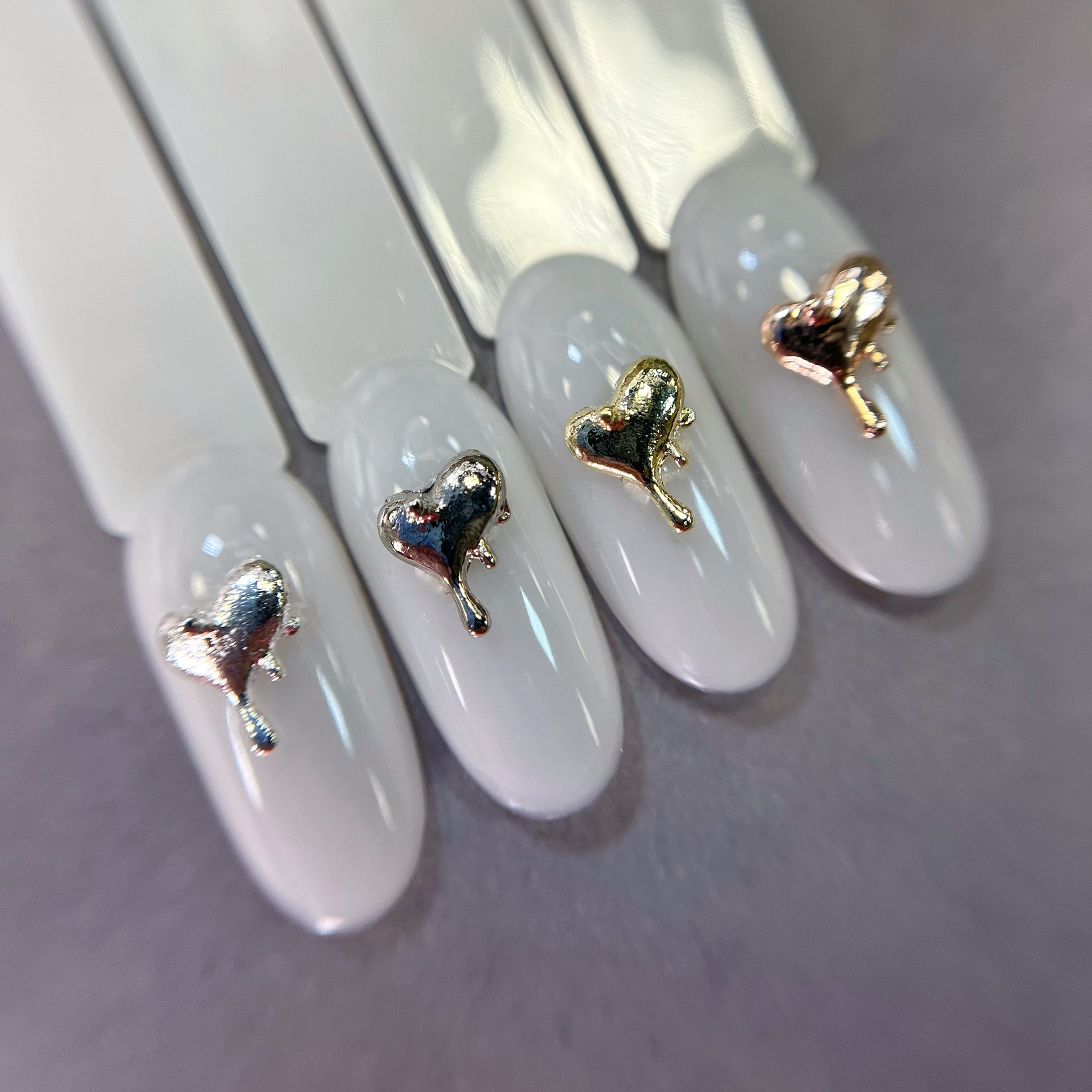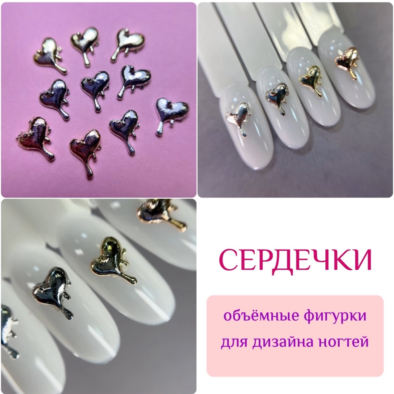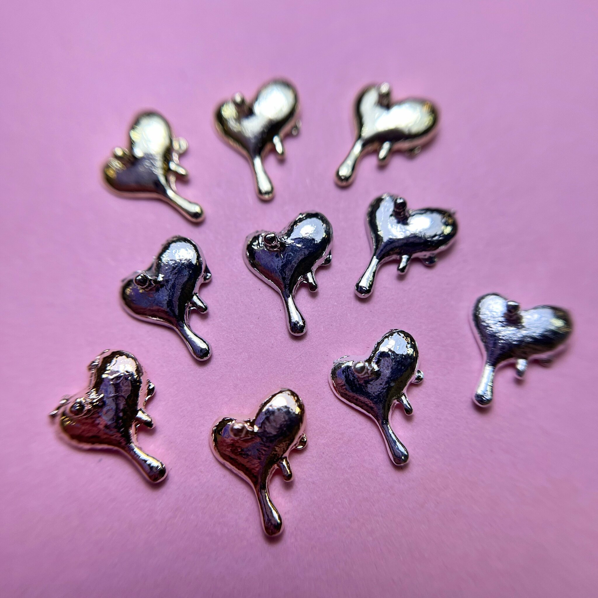 1852 Фигурки объемные "Сердечки" металл 10шт