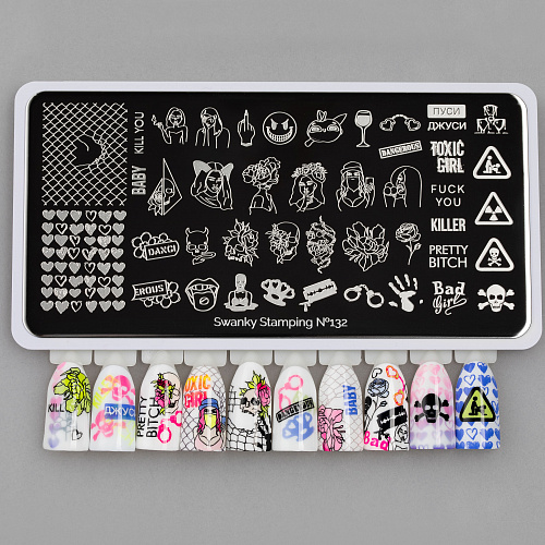По многочисленным просьбам мастеров мы совместно с By Milky♡Nails @Valeria_nail_stylist подготовили пластину для девушек с дерзинкой. Пластина – вызов, для смелых, заявляющих о себе девушках. Популярный паттерн сетка, надписи изображения девушек, черепа в цветах все арты прекрасно сочетаются между собой создавая каждый раз уникальную композицию на ногтях.